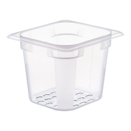 het geribbelde ontwerp zorgt voor een snelle afvoer van vloeistoffen en verkort de ontdooitijd. De geperforeerde bak blijft bij het stapelen los van de rand van de dichte bak. Smaak- en reukvrij, geschikt voor diverse voedingsmiddelen. Bestand tegen temperaturen van -40?°C (vriezer) tot +95?°C (magnetron, zonder deksel). Diverse deksels zijn los verkrijgbaar,
