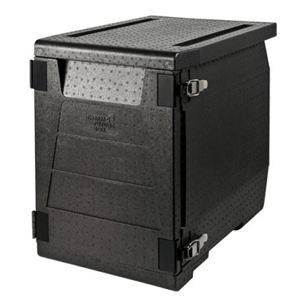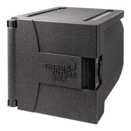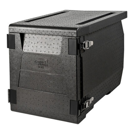 opvouwbare thermobox voor isolatie en transport, uit één stuk met geïntegreerd deksel en nauwsluitende EPP-filmscharnieren welke de isolatie verbeteren. Met gestructureerd oppervlak voor meer stabiliteit, ruimtebesparend bij opslag (volumereductie 56%) en tijdens transport. Met twee geïntegreerde handgrepen onderaan, snel te monteren en stapelbaar,