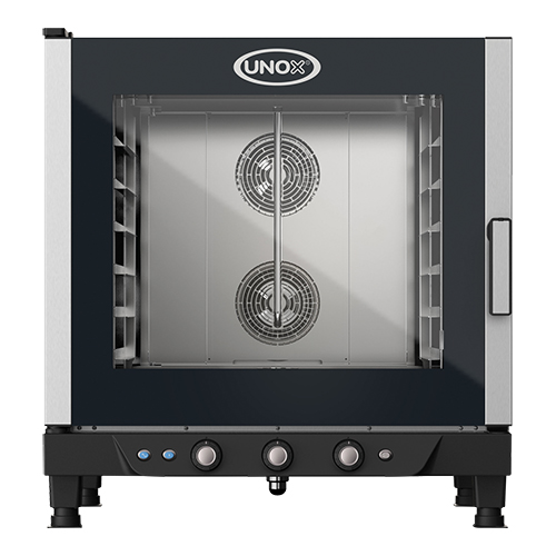 de UNOX Bakerlux Manual beschikt over draaiknoppen op het controlepaneel met de mogelijkheid om tijd, temperatuur en de hoeveelheid vocht in te stellen en de keuze voor 2 ventilatie snelheden. De oven beschikt over Steam.Plus technologie voor het toevoegen van vocht aan het bakproces vanaf 48°C in stappen van 20%, Air.Plus voor een perfecte heteluchtcirculatie en de Dry.Plus technologie zorgt voor afvoer van vocht uit de ovenruimte en het drogen van producten voor een optimaal bakresultaat,