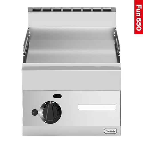maximaal benut bakplaat oppervlak met zeer korte opwarmtijd d.m.v. een dubbele gasbrander, bakplaat vervaardigd van gegoten en glad geslepen speciaal staal, met extra grote ingebouwde vetopvanglade,