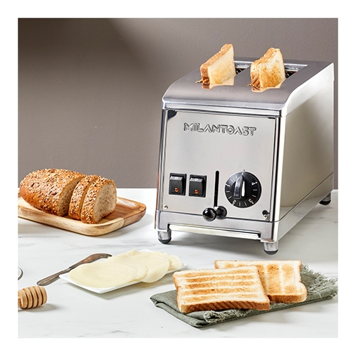 De broodrooster in gepolijst roestvrij staal is compact en direct opgewarmd en klaar voor gebruik. Met een energiebesparende selectieknop om één of beide sleuven te verwarmen en voorzien van duurzame verwarmingselementen voor gelijkmatige bruining en een zelfreinigend systeem.,