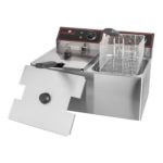 geheel uit roestvrijstaal vervaardigde friteuse, model is o.a. voorzien van EGO thermostaat en koude zone, verhittingselement en binnenpan gemakkelijk te verwijderen wat het onderhoud en reiniging vereenvoudigt,