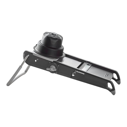 kunststof behuizing met roestvrijstaal snijvlak, voor plakjes instelbaar tot max. 10mm, geleverd inclusief beschermslede en 2 Julienne meskammen,