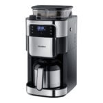 filterkoffiemachine met geïntegreerd roestvrijstalen maalwerk, door de fijne maling en de individueel in te stellen maalgraad kan deze volledig afgestemd worden op de eigen smaak. Het apparaat is voorzien van LED bedieningspaneel met timerfunctie. 3 aromastanden, maalwerk uitschakelfunctie voor de bereiding van voorgemalen koffie, instelbare maalgraad en koffie hoeveelheid,