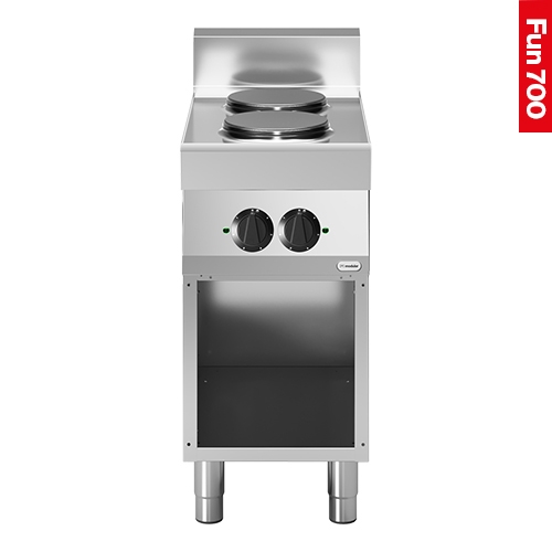zwaar gegoten EGO kookplaten met 6 standen schakelaar en controlelampje per kookplaat, verhittingsoppervlak Ø22cm, voorzien van roestvrijstalen rand,