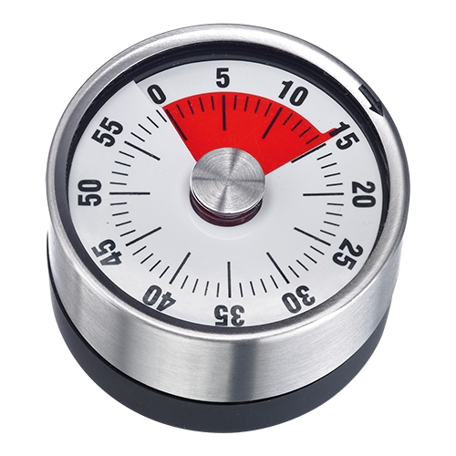 mechanisch en werkt dus zonder batterijen. Draai de timer volledig door om de belfunctie te activeren en stel vervolgens de gewenste tijd in.,