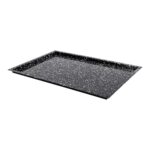 Om het reinigen van de ovenschaal te vergemakkelijken, zijn speciale witte spikkels met een diameter tussen 1 en 4 mm op het oppervlak aangebracht. Door dit speciale procédé blijft het vuil discontinu plakken, waardoor het schoonmaken een stuk eenvoudiger wordt,