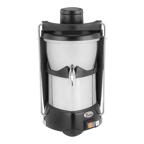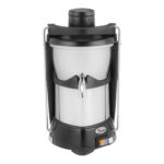 krachtige professionele sapcentrifuge welke stil is in gebruik. De sapcentrifuge is eenvoudig in gebruik en alle delen die in aanraking komen met voedsel zijn van roestvrijstaal, met beveiliging en blokkeerhendel voor opening en sluiting van sapcentrifuge. Voorzien van extra grote opening van 8cm, met aparte pulpafvoer in grote kunststof bak en rubber voetjes die het weglopen en vibraties voorkomen,,