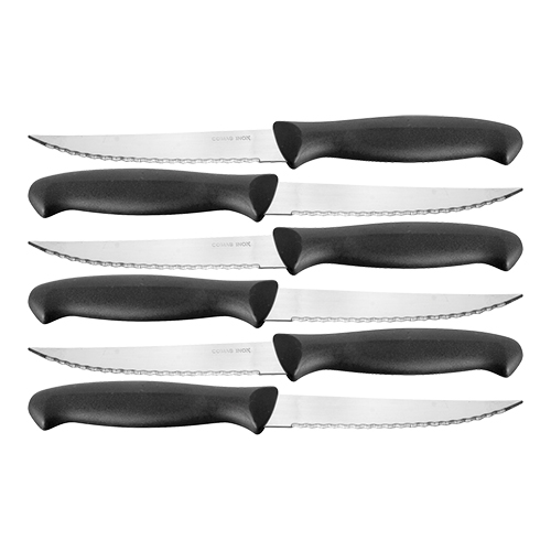 set à 6 steakmessen, zwart gegoten heft,