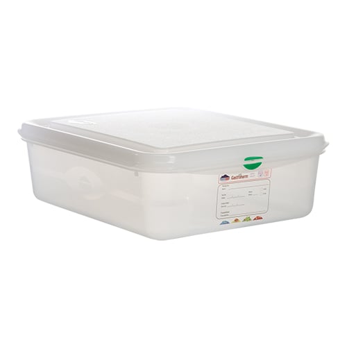 luchtdicht afsluitbaar door uniek dubbel afsluitsysteem en absoluut smaak- en reukvrij, geschikt voor vriezer -40°C en magnetron +100°C (zonder deksel), wordt compleet geleverd met product coderingsset volgens de HACCP normen,