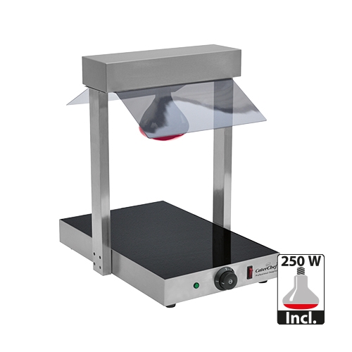 eenvoudig in design en gebruik, bewaar uw gerechten en snacks op de juiste temperatuur tot het moment van uitserveren. Dit model beschikt over een apart inschakelbare keramisch warmhoudplaat en infraroodlamp, de warmhoudplaat is thermostatisch instelbaar tot 85°C. Compleet met hygiënische beschermkap van acrylglas en daardoor ook zeer geschikt voor o.a. buffetopstellingen,